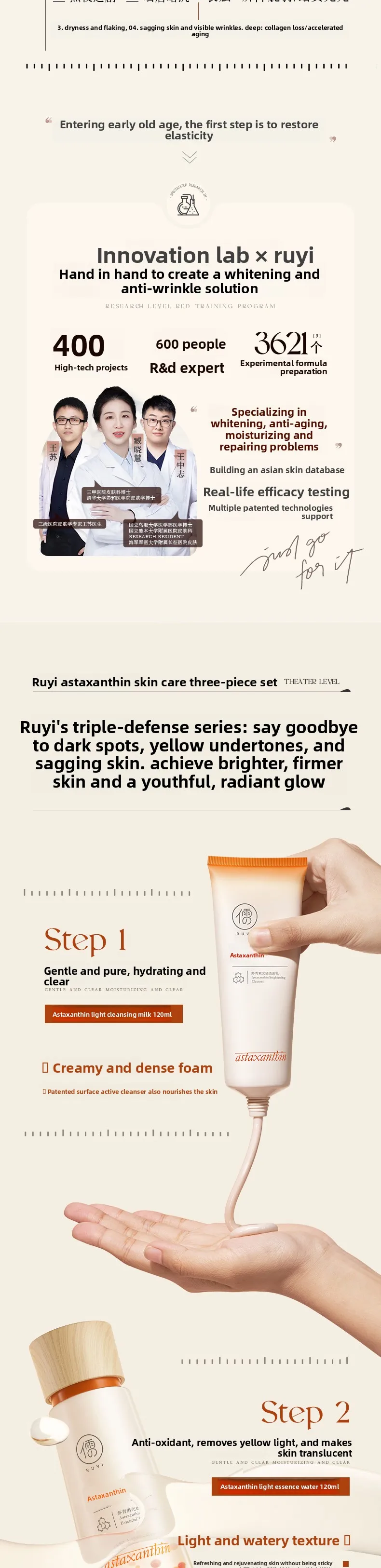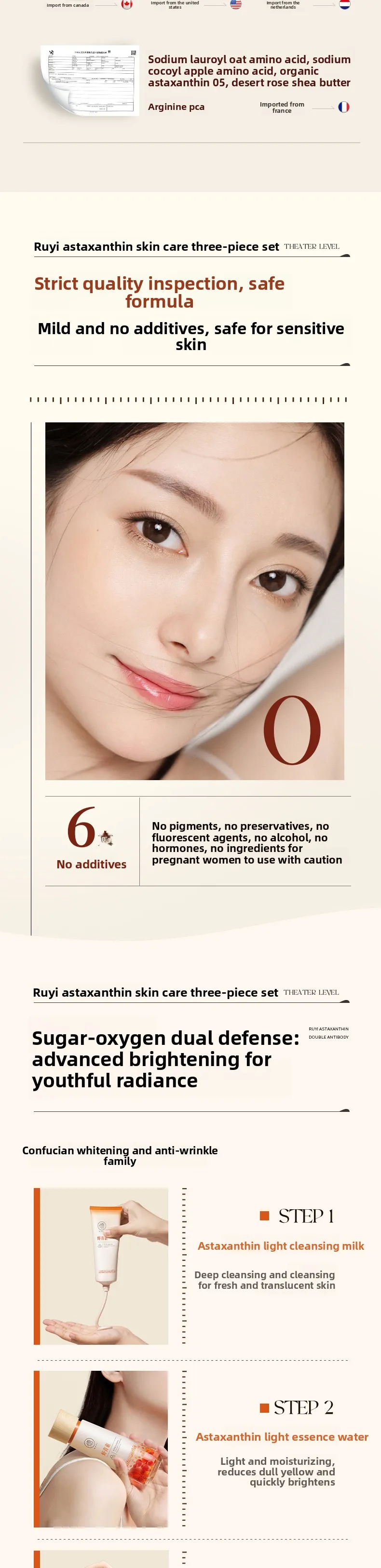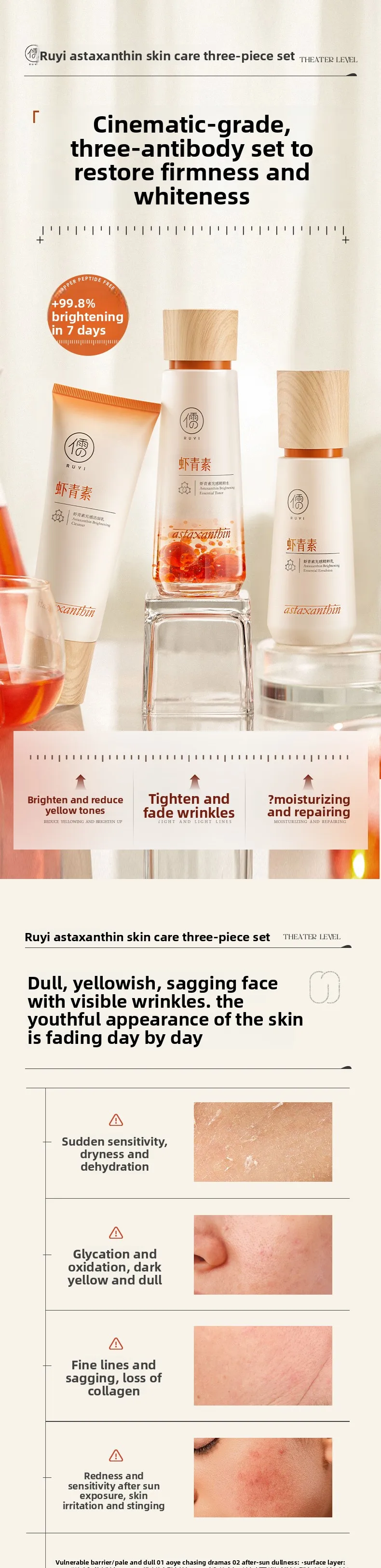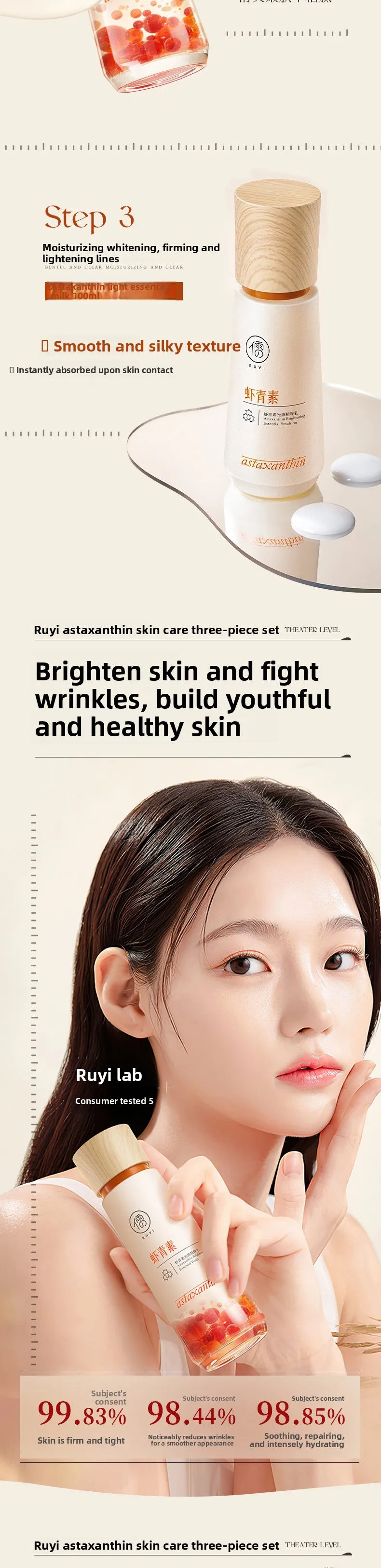 RUYI Astaxanthin Face Care Lotion Set Brighten Skin Tone Facial Clean Whiten Moisturizing Hydrating Yellowish Complexion Removal